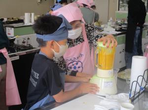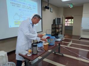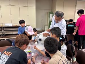 講師の稲野辺先生から液体窒素について学び、アイスクリームや浮沈子を作りました。